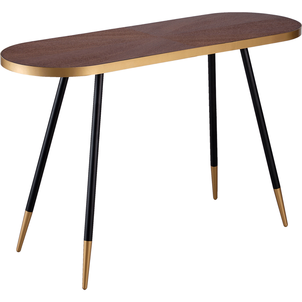 Gold Walnut Desk Traviata proves that the gold trend . The shade of dark wood , elegant and sober, is enhanced with the brilliance of small golden touches on the belt and the feet.All your products will instantly be showcased with this contemporary desk.