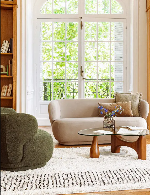 Giulia Sofa bring you real enveloping, cozy and comfortable comfort. This rust-colored boucle fabric armchair fits naturally into all interior styles. With its soft upholstery and rounded shapes, it promises irresistible moments of relaxation gives you the freedom to customize your atmosphere for your event.