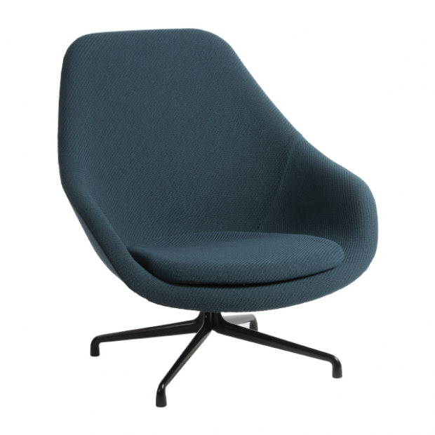 The About A Lounge Chair AAL 91 is slightly upholstered with CMHR (Combustion Modified High Resilient) foam and it has armrests, a high backrest and a swivel four-foot base.  The seat of the Hay AAL 91 consists of polyurethane, the frame of polished or powder coated aluminium.