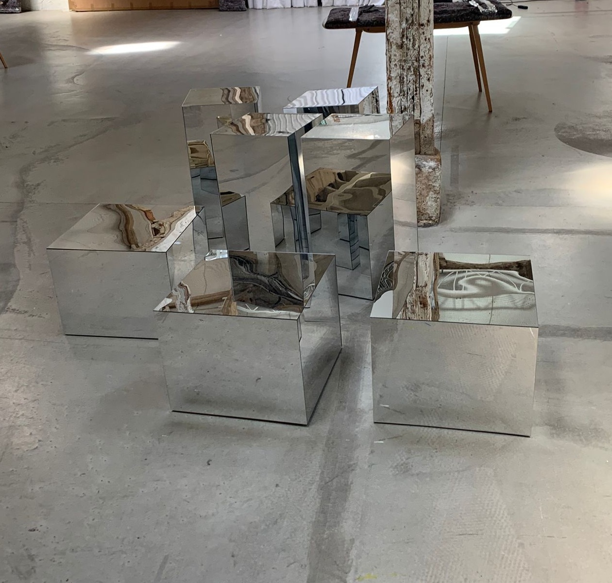 Materials MDF structure covered with mirrors