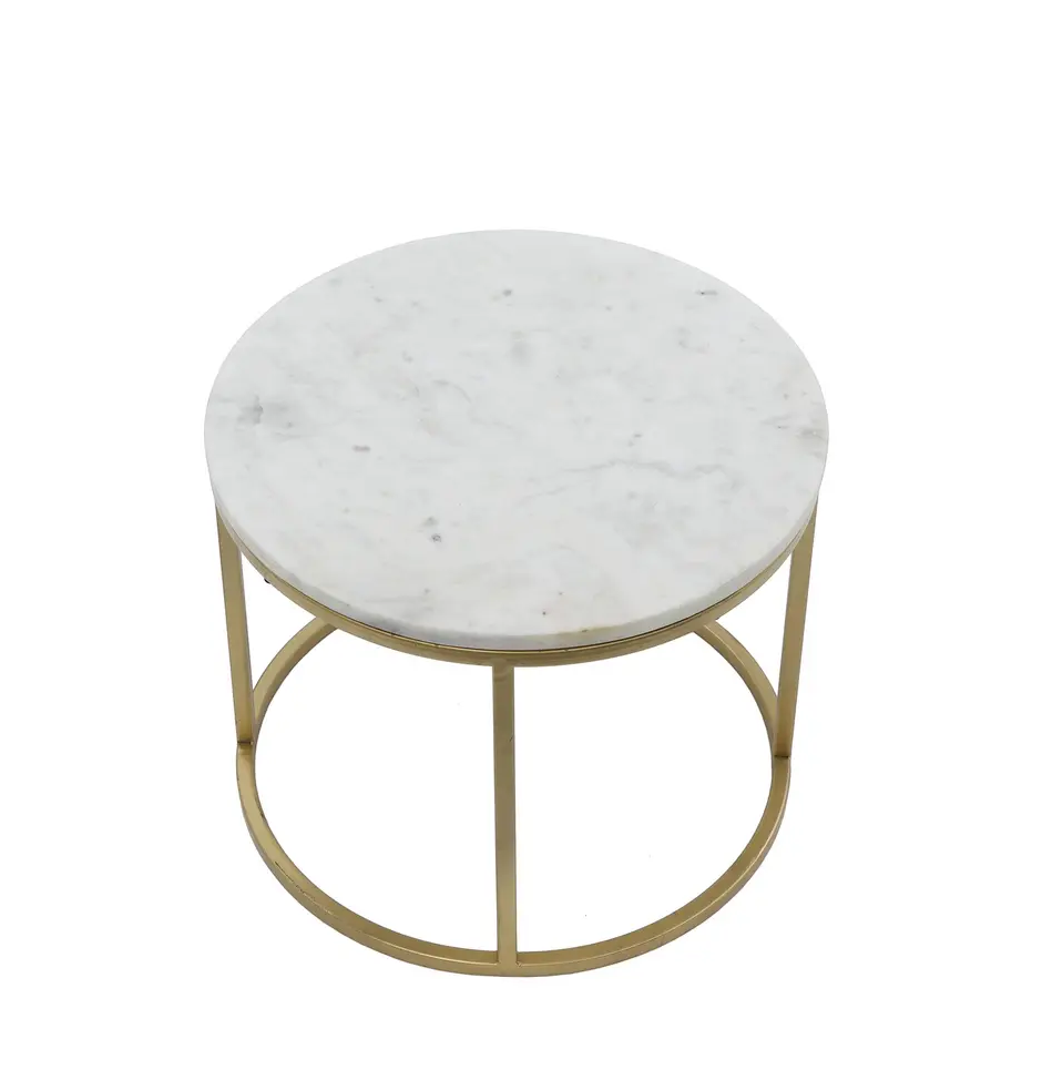 This low  form a set of 2 pretty coffee tables with gold metal legs and real marble top!